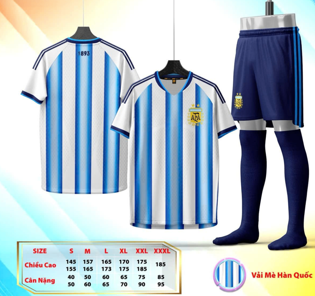 ✅ Sọc xanh – trắng kinh điển: biểu tượng của sự tinh tế, bền bỉ và tinh thần chiến đấu không lùi bước của Argentina.